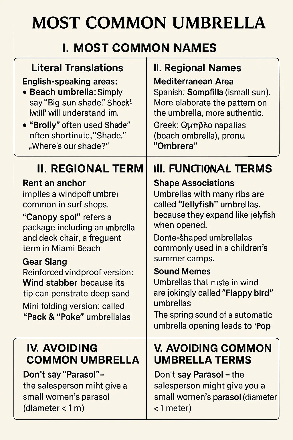 Ось загальні назви для пляжні парасольки в різних контекстах:
